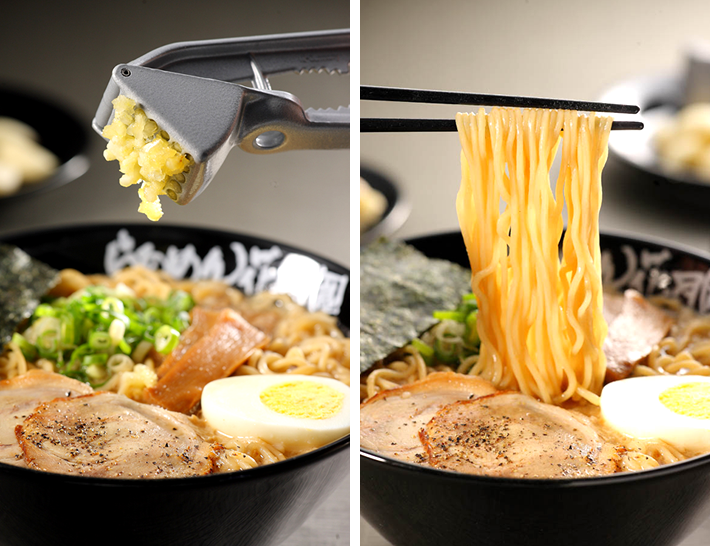花月嵐最大的特色就是來自日本原汁原味的『大蒜拳骨湯頭』,獨一無二的自信美味〈大蒜拳骨拉麵〉,使用拳骨、大蒜、層層過濾的淨化水,熬煮出獨特而濃厚的特製秘傳湯頭,光是一年就能用掉50噸的大蒜及豬拳骨才能來熬煮出濃厚湯頭。